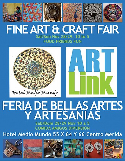 Other upcoming shows include ArtLink's Fine Art & Craft Festival at Hotel Mediomundo and Noche Blanca, a citywide art event held on the evening of Saturday, December 12. The Fine Art & Craft Festival will be held November 28 and 29 from 10 am to 5 pm, and will feature works from artisans around Mexico, including Merida. The hotel is located on Calle 55, between 64 and 66, and food will be served from their in-house vegetarian restaurant. You can see a video of last year's similar event (linked below).
