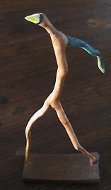 Personally, we can vouch for that. Having attended the last few AANY shows, we have learned to only put as much money in our pocket as we will allow ourselves to spend, because the temptations are great. At the last show we picked up woven floormats from Campeche, earrings and rings, beautiful little salt holders carved from bull's horns, an incredibly original painted hemp shawl and various gourd masks and vases. Many of these purchases were given as Christmas presents to our loved ones back in the States, and they were much appreciated. One of our favorite purchases is pictured on the left. It is a stick, smoothed and painted to represent an eagle (on the top), and a snake (the green part on the right)... the two animals that figure in the story of the origin of Mexico.