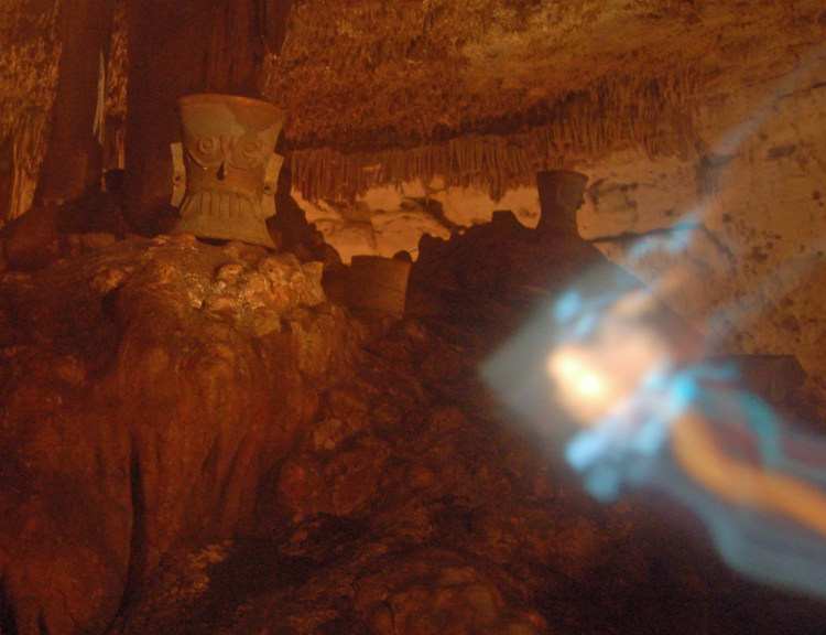 The night before everyone was to return to Balankanché, the gods made themselves heard, unleashing torrential rains on Yucatan. On October 20 at 7:45 in the morning, everyone gathered again at the mouth of the cave. Ho’il recited a brief prayer, and then led everyone into the bowels of Balankanché. At the altar they found four candles still burning. Like the number thirteen, four is a sacred number to the Maya. Ho’il declared this positive omen.