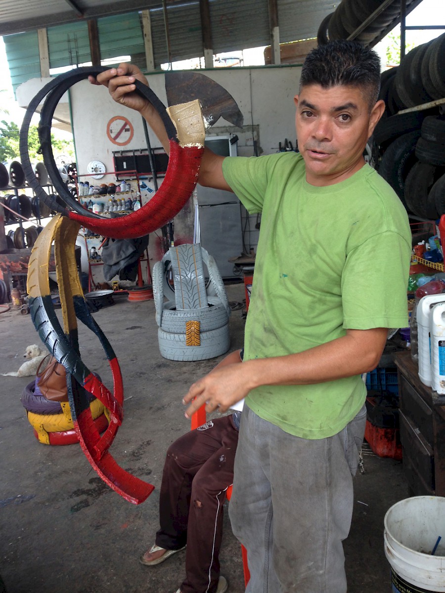 - Pedro Galdanéz from Progreso: Unique recycled art, including creations made from car tires.