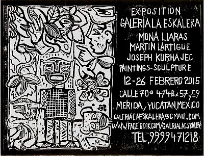 We first heard of Joseph Kurhajec a few years ago, when he first established his studio in Merida. His arrival was announced by posters... lovely, somewhat primitive woodcuts of a fish announcing the Museum of Fine Art of Joseph Kurhajec. "Curious...", we thought. But events conspired to keep us from investigating further.