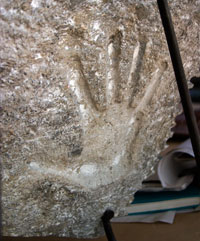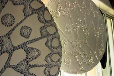 Katherine's pieces are deceptively decorative at first. Like many things in nature, when you quiet your mind and spend time with them, they speak. They whisper of places and events far, far away in time and space. They invite a child's wonder for fossils and dinosaurs and butterflies and a scientific fascination for the worlds found in a microscope. And they pose the ubiquitous questions that we all live with, but seldom allow ourselves to ask... Why are we here, if the only thing we leave behind are these huellas? What is the impact of what we leave behind? Why does it matter and who does it matter to? What is it exactly that survives? And what will I leave behind? What will be MY legacy that someday, someone, somewhere will see and appreciate?