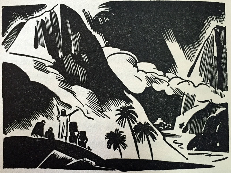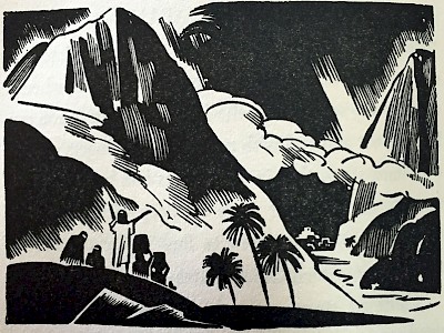First, a broad stair must be made, down which the blind one could tread. For this a pair of trees were felled, notches hacked at regular intervals down the trunks, and into these notches crossbars of wood were set and bound firmly into place with lengths of the strong, wiry anikab vine. Another crew cut bundles of long dry faggots of the ta-che wood for torches. The end of each faggot was split downward into fine splinters that would light quickly when sparks were struck with the flint fire-makers. Such torches as these would flame high and bright.