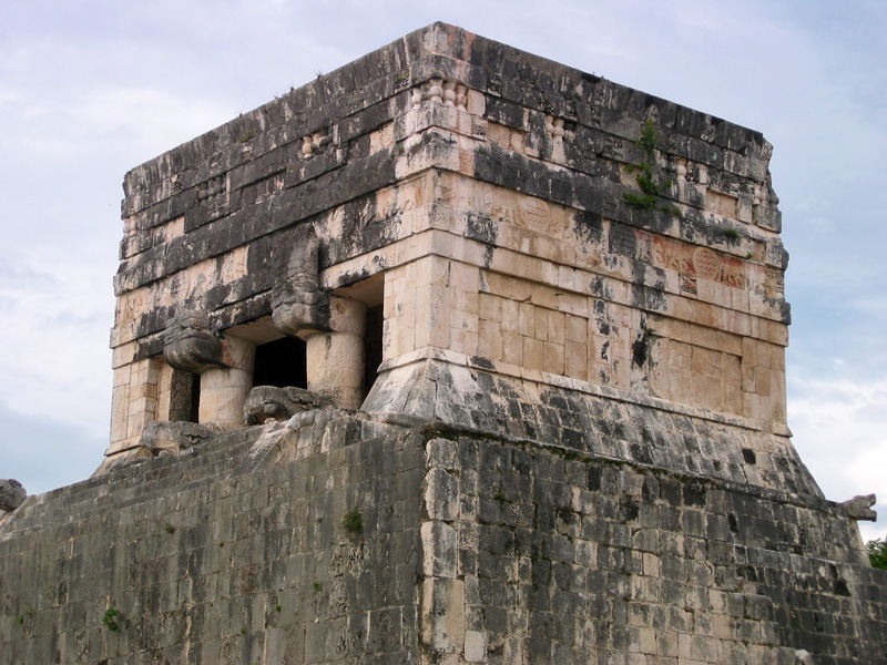 Within the walls of Chichen Itza, the sun gilded temple and palace. Breezes played softly through the court of a thousand columns set amid palm and acacia. The Aztec lords here took their ease in gardens blossoming with purple of mimosa and golden allamandas, where were walks of inlaid tile, seats of carved porphyry, the plash (note: nope, not a typo!) of fountains.