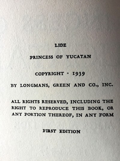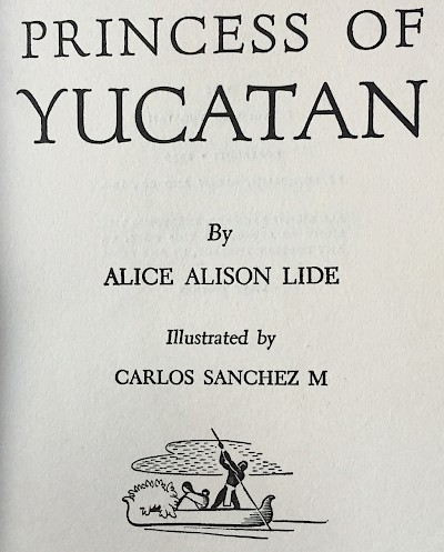 Editor's Note: Here we are going to try something new... a serialized reprinting of a novel that we found on eBay: Princess of Yucatan by Alice Alison Lide, published in 1939 by Longman's, Green and Company out of New York and Toronto. The book was obviously researched heavily, as there are numerous (and interesting) references to Mayan lifestyles, locations and spirituality. We are, however, puzzled by a few things. As far as we know, the Aztecs did not set foot on the Yucatan Peninsula. But there were the Itzaes, who were "from the north" and definitely not Mayan, as the architecture indicates. And they did bring a ball game with them, that was played in Chichen Itza and around the Yucatan. Also, for some reason, the author felt she needed to make the protaganist, the Princess of the Yucatan, a blonde! But let us agree to overlook some of these obvious aberrations, because the rest of it might be fun... a little glimpse into the Mayan world as seen in the 1930's by an English speaking female author from the southern state of Alabama. We'll learn some things, I'm sure. Also, the drawings, which we will include, are charming, and are attributed to Carlos Sanchez M.