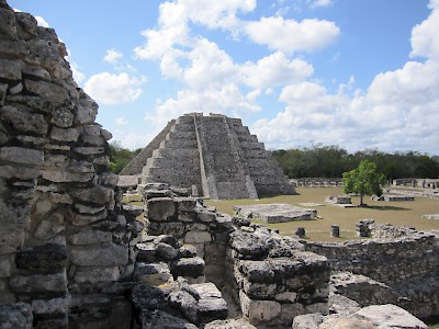 From ancient Akeh, with its jungle-swathed katunes*, the thirty-six calendar stones that marked time back through six thousand years of the Mayan empire, a similar engraved stone sent the wanderers west and south through a host of other "silent cities" -- Labna, profuse with sculptures, and Izamal and Uxmal.