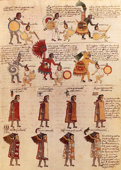 Everywhere was movement, sound, excitement. From tower tops, night watchmen sonorously proclaimed the hour. The high-burning altar pyres of the temples poured forth the brilliance of their eternal fires and added to the illumination of the city. At this hour the pleasure taverns, with doors now opened wide to the street, saw their busiest time. Within these, jugglers did their turns; pretty painted girls seated cross-legged before little wooden drums, tapped soft accompanients to the songs they sang; other girls whirled in a maze of dance steps. In some taverns, games of chance, such as dice and totoloque, the latter played by hurling golden balls at a golden mark, and intensely popular now that it was in high favor at the emperor's court, entertained the patrons as they sipped chocolate, or wine of the cactus apple, or a heady brew of fermented honey.