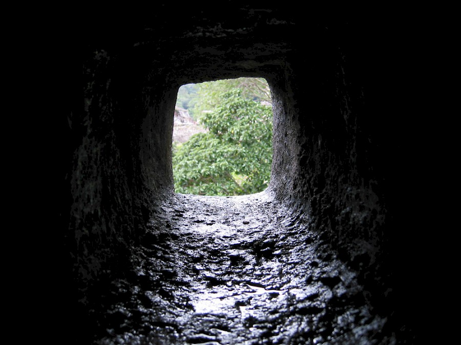 But fear began to stir in her again. What lay ahead? Did others know of this tunnel? Did a dread guard from the temple lie in wait for her out there, ready to drag her back to a death more horrible than starvation? She moved forward slowly, warily now. It was the clutch of thirst at her throat that drove her on. Water -- she must have water!