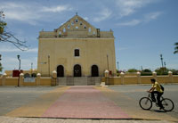 This is the Tunkas County Fair. Tunkas is 86 km southeast of Merida, almost in the exact center of the state. It has just under 4,000 inhabitants, about half of whom are Mayans. This is farming and cattle-ranching country, so look for huipiles, hemp hammocks, and pottery here. The food is great, but watch out for the spicy habaneros. Tunkas suffers from a high level of poverty and, as a result, has a high rate of migration to the U.S. The municipality is one of three sites in Mexico that are being studied by the University of California at San Diego in their International Migration Studies program.