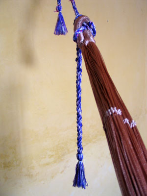 To attach your hammock to your hamaquero, you need two things: the special length and configuration of rope, called sogas para hamaca (ropes for a hammock) and the hooks which attach the rope loops to the hammock hooks and are called ganchos para hamacas or eses (for the "S" shape that they come in). The sogas are usually sold in pairs, because you need one for each side, and come in colors to match (or not!) your hammock. All of these things can be found in the mercado, and often times even in a corner store in your neighborhood.