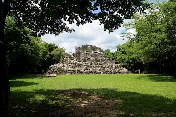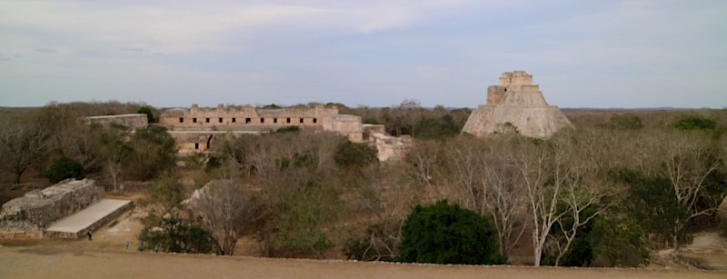 Uxmal has another large monument dedicated to Ixchel. The largest pyramid of Uxmal, called the Pyramid of the Magician, is a reference to Ixchel; a magician who could turn the Sun King's favor into a bountiful harvest. The form of a pyramid piercing the sky may be a reference to the magic of life sprouting up from the dirt. The area is also heavily adorned with carvings of the rain god Chaac, a god often seen alongside Ixchel because of their shared association with crops. This agricultural significance explains why Uxmal is located in the fertile heart of the peninsula.