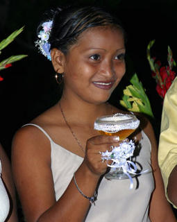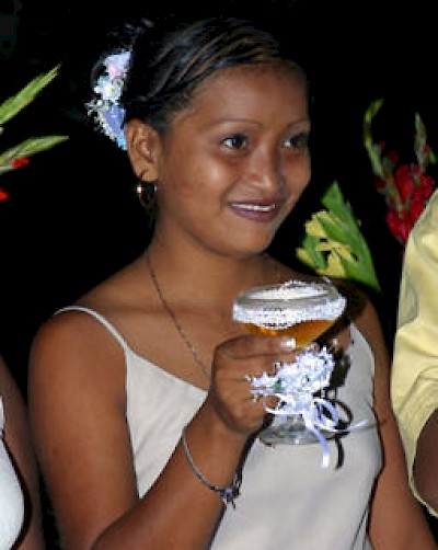 At one point after everyone had eaten, the 15-year-old, whose name is Soco, came up to the front of the crowd with her parents and godparents. After the music was turned down, there were toasts and kisses, laughter and cheering and clapping... and then Soco took her supposedly first drink of beer out of a decorated glass. The music started up again, and people began to slowly drift away back into the dark night.