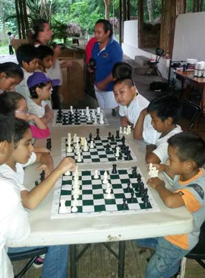 The group of parents and children also played chess sponsored by the group FICMAYA, underlining the concept that everything begins in the mind, and acknowledging that this activity is a good exercise for the mind and consciousness of both children and adults. It is also an activity where both Maya and non-Maya children can meet on a level playing ground.