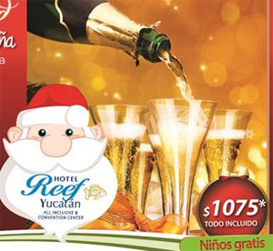 Hotel Aluxes' Christmas Eve dinner will be at the Popol-Vuh Salon and consists of a four-course meal, including a choice of entrada (house paté or German style potatoes), a choice of salad (Greek or Caesar, a choice of soup (cheese or artichoke) and a choice of four main courses (chicken, shrimp, turkey or beef) and dessert (Chocolate Brownie, Kiwi or Strawberry tart). The price includes a Christmas toast, soft drinks, and the dinner, accompanied by a live musical group for dancing.