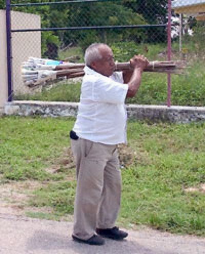 Later, we moved on to another part of the field, where the men explained that they were setting up to make carbon, or charcoal. We were amazed to see a structure worthy of Andy Goldsworthy: A perfectly shaped and painstakingly constructed cone sitting in the middle of the clearing waiting to be covered with chicun (red-colored) dirt and set on fire. According to the Mays, it will burn for 72 hours, smoking like a volcano, and then they will disassemble it, let it cool and then sell it as charcoal. It took them about three weeks to clear the land and cut down the trees they used to build the structure.. It will take another week to burn it, chop it and bag it. Then they will take it to market, earning about 2500 pesos (less than $250 US) for their troubles.