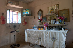 Only las jovenes (the young people) were interested in watching the soccer game. And the gringos, por supuesto (of course). We sat facing the two altars, one honoring saints and one honoring... what? Nationalism? International fame? The strength and beauty of youth? Money? Globalization? Aaaah, too much to think about... much easier to enjoy the Saturday afternoon with fellow fans of the Mexican soccer team, feel the afternoon breezes pick up and blow through the open doors and windows and listen to the grown-ups speaking Mayan in the outdoor kitchen. Much easier to drink beer and snack on guayas, those little green fruits that grow in profusion here and taste like SweetTarts, peeled and mixed in a bowl with salt and habanero chile (yum! ouch! yum! ouch!). Much more fun to cheer and sigh as Mexico played well (si! si!!) but lost (oooohhhh... que triste!).