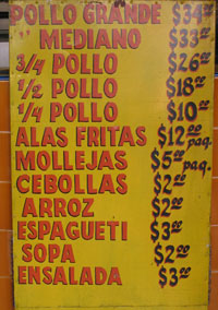 Whole Chicken (3.50 lb): $30 pesos per kilo ($ 42.80 pesos in 2008, $55 pesos in 2011, $60 in 2013 and 2015)