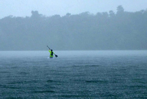 A 20-knot wind and rain are on the starboard stern as we motor north in the predawn light. While we are very grateful for the foul-weather gear we have brought along, it will turn out that the start of the day is not a portent for the remainder of it. But, wind and rain accompany us for most of the fast, forty-minute ride from south of Bacalar pueblo to the far north end of Laguna Bacalar, which is the starting point of Bacalar's inaugural seventy-four kilometer paddle marathon.