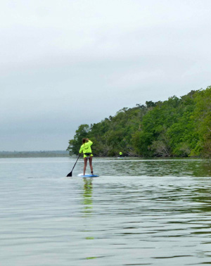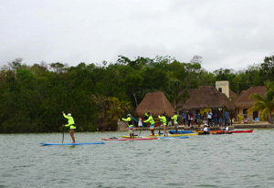 Editor's Note: This is the third of three articles on Laguna Bacalar by Bacalar resident Scott Wallace (see links to the other two at the end of the article). The piece highlights the experiences of two teams of women paddlers (two women shared each board). Each team paddled in the 74-kilometer marathon race that took place at Laguna Bacalar on the Yucatan Peninsula on May 1st and 2nd, 2014. Scott was one of two support personnel who accompanied the teams by motor boat during the two days. Here is his recounting of the women athletes' adventure.