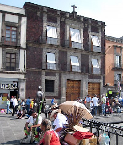 For the next five days, we would be accompanied in our photography work by the constant drumming of Aztec warriors on the zocalo, as well as the sounds of the crowds and the cries of people whose puestos (stands) set up just outside the building were selling everything from fresh tacos to cheap bracelets. Standing on the front balcony or on the roof of Seminario 12, we could see the temporary ice skating rink that is built on the square every Chirstmas, and a large bamboo structure being built by Colombian workmen, which in January 2008 will house an exhibit of photography by Gregory Colbert (something we are sorely tempted to return to see… Go to ashesandsnow.org and be tempted yourself!). At night, we could see all the Christmas lights that had been installed on the buildings surrounding the square, as well as the crowds of people milling around, playing on the hopscotch and Twister boards painted on the pavement, being blessed by the Aztec dancer/shamans, or eating tacos, tamales and elotes. We were definitely right smack dab in the center of Mexico, with all its noise, smells, crowds, fun and lights. We found there was so much to do there in the Centro, we never actually went anywhere else (Chapultepec, Polanco, Zona Rosa, etc.).