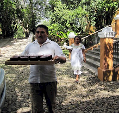 Excitedly chattering about our good fortune in seeing such a picturesque event, we piled back in the van yet again. The entrance to Itzincab was only a few miles away, down a narrow road. When we arrived at the gate, it was opened immediately… we were expected along every step of the way, and yet we never once noticed the driver or our guide talking on a cel phone or any other device. Que misterioso!