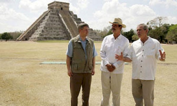 We think somehow it is our duty to mention that today the three most powerful men in North America visited Yucatan's most important tourist attraction: the ancient Mayan city of Chichen Itza...