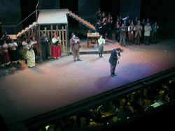 So after arming ourselves with everything we needed but opera glasses (darn it), we spent a night in opera heaven. In short, it was magnificent: clever sets, creative blocking, an orchestra that didn’t miss a note (and we heard they were given only a couple weeks of rehearsal), and a convincing and commanding cast from first curtain to final bow.