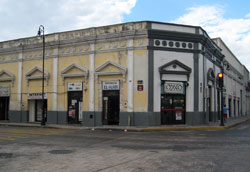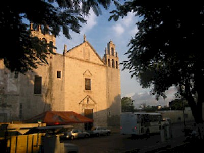 One of the oldest colonias in Merida, the Santiago district is to the west and north of Plaza Grande. The church, founded in 1637, was once much grander; now little remains of the original structure other than the modest sanctuary with a baroque statue of Santiago and the dated inscription above the entry. The front of the church and the main nave, supported by buttresses, not necessarily flying, was built in the 19th century. There is a park in front of the church and a market next to the church, with fruits and vegetables, meats, and a good flower selection. There are also a host of excellent cocina economicas, sundries stores and an ice cream store. There is also a children's playground in the park, a beautiful water fountain surrounded by shade trees, and a large concrete area used at various times for skateboarding, big band music (every Tuesday night!), dancing, fairs and temporary markets. Surrounding the park you can find a grocery store, a drugstore, a movie theatre and a branch of Mexico's pawn shop chain, Nacional Monte de Piedad. Behind the church are a number of hardware stores, paint stores, a bicycle store and Flor de Santiago, a bakery, a milk store, a cafe and restaurant. And on the other side of Calle 59 are two large schools, one public and one private, in beautiful buildings both built during the Porfirio Era (early 1900s).