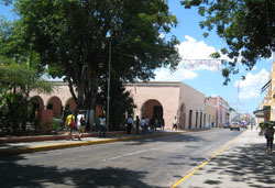 Mejorada Park itself is one of Merida's most tranquil, with its large, bronze sculpture commemorating the Niños Heroes de Chapultepec. The park is often used by local youth for dance or parade practice. On the east side, facing the church and the University buildings, you can find a line-up of men and their trucks available for whatever job you might have for them. If you are moving furniture from one house to another, this is the place to go to rent a crew and a truck to help you. On the west side of the park, is Merida's best Spanish restaurant, El Segoviano, the famous Los Almendros restaurant and the Museo del Arte Popular, the museum of Mexican popular arts and crafts. There is no market in the neighborhood, but the central Galvez mercado is only a few blocks to the south. There is definitely an extranjero presence in this neighborhood, with many a restored colonials and many more on the way.