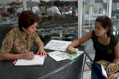 The supply list was typed up on a tiny piece of paper, smaller than a Mayan fist. Supplies listed included hair clips (called mariposas or butterflies), brushes and combs, a spray bottle, two school t-shirts, a school uniform jacket and a maqui, or manniquen head with real hair. The maquis were on backorder so she has to pick that up later. There was a brief moment of excitement when she tried on the uniform and couldn't help but smile, but most of the proceedings were carried on with much Mayan seriousness on all sides, with the crazy gringa snapping photos over in the corner. Soco walked out with two bags of supplies, an attendance card and a new pair of shoes.