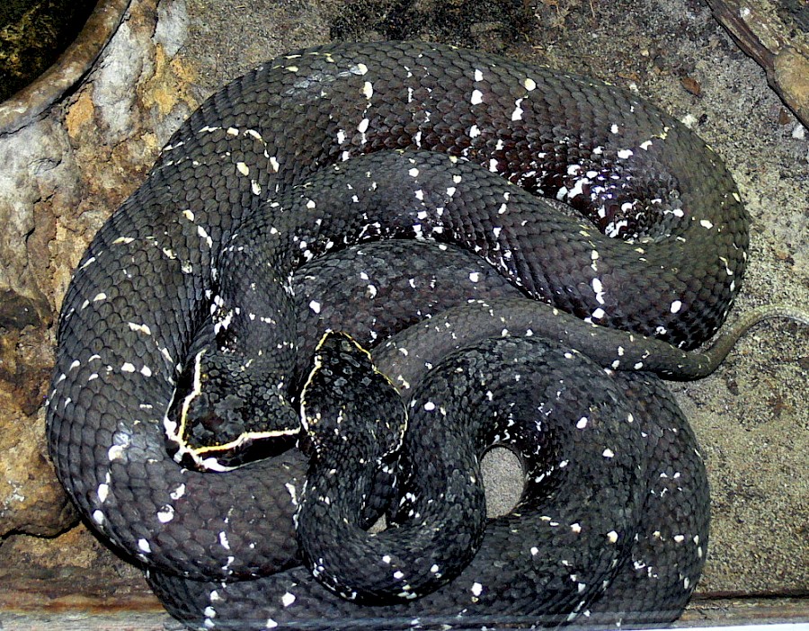Every pit viper has a conspicuous pit, or hole, in its face between each eye and the nostril in front of it. The pits contain heat-sensing organs enabling the snake to locate warm-blooded prey in total darkness. (And you thought they were called pit vipers because they lived in pits, didn't you?)