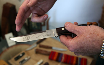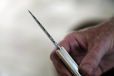 Cuando las buscas, como a menudo lo hacemos, y entras en la casa de un hombre que hace cuchillos para ganarse la vida, las metáforas abundan. Si las metáforas fueran cuchillos, estaríamos sangrando. Y si no fueran todas tan trilladas, incluso podríamos haber comenzado con una o dos. Pero hablar de cómo este hombre está "a la vanguardia" o que te traemos una "rebanada de la vida" parece reducir la metáfora a un juego de palabras.