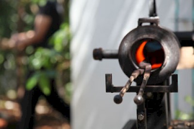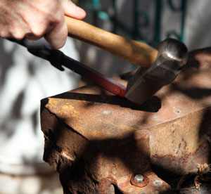 Durante el día, Jeff observaba cómo Don Primitivo y su hermano alternaban golpes de martillo sobre metal incandescente que había sido calentado en un horno primitivo de ladrillo, mientras el hijo de Don Primitivo bombeaba las campanas para mantener el fuego caliente. Comenzaban con los resortes de hojas de coches viejos, y quemaban madera que recolectaban ellos mismos.