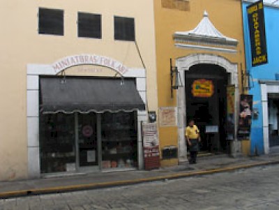 Looking for Mexican folk art from around Mexico? Our favorite place is the store called Miniaturas located on Calle 59 between Calle 60 and Calle 62 on the north side of the street. When the store is closed, it's easy to miss because the shop is hidden behind sliding metal doors like a roll-top desk. But when it's open, behind the glass windows you'll see shelves and shelves of hand-crafted items from around Mexico: arboles de vida (trees of life), tiny sculptures of tin or pottery, copies of old Mexican movie posters, various types of calaveras (skeletons), masks, greeting cards, and a whole lot more. And yes, the store specializes in miniatures, a skill perfected by many craftspeople in this country. Most of the popular art in this store is charming and not unreasonably priced either. The added bonus is that much of it is small and easy to pack or send. Another place to find Mexican art is the small gift shop at Hotel Mediomundo. Even though you cannot see it from the street, it is open to the public. Ring the doorbell and they'll let you in and you just might find the perfect Guatemalan pillow case or woven bracelet. A store called 100% Mexican just opened in the new San Angel Hotel at the south end of Paseo de Montejo and it too has quality examples from artesanias around Mexico.