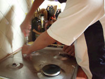 As it turned out, the stoven repairman was actually a team of three people: an old man in his seventies, his middle-aged son and a younger man. The old man was obviously in charge and was apparently the one with the idea for the new business. The son was the one who spoke English and who wrote the flyer. He told Beatriz that they had put the flyer all around our neighborhood, Colonia Santa Ana, and had received at least two other jobs from it. The third young man was, as Beatriz put it, the one who did all the work.