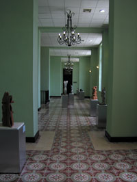 Don Orlando nos llevó por el recorrido, comenzando por el lado norte del edificio. Explicó que comenzaron a planear la renovación del museo hace diez años, y que se gastaron más de 14 millones de pesos en completar la tarea, así que verlo finalmente terminado es increíblemente satisfactorio. El edificio siempre ha sido un edificio gubernamental, y por eso fue renovado por el departamento de Obras Públicas del Ayuntamiento de Mérida. Ha sido el Palacio Federal, la oficina de Correos y ahora el Museo. No siempre tuvo el llamativo techo a cuadros, pero cuando los arquitectos lo estaban renovando basándose en fotos antiguas, decidieron conservar el techo característico que se le había añadido hace unos treinta años.