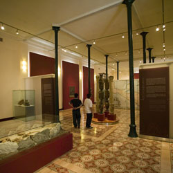 Al otro lado de la entrada del museo hay dos salas: la sala Maya y la sala de la Conquista Española. En la sala Maya encontramos ejemplos de antiguas piedras talladas de la ciudad de T’ho (el nombre maya de Mérida), cuyo nombre completo, Ichcaanzihó, significa “Ciudad de los Cinco Cerros”, según los cronistas. Los cinco cerros (que significa algo más alto que colinas pero no tanto como montañas) no eran realmente ni una cosa ni otra, sino cinco pirámides construidas durante el periodo Clásico temprano maya y que después fueron usadas como material de construcción para la ciudad colonial española. La sección de la Conquista incluye piezas arquitectónicas de los primeros edificios en Mérida, así como pinturas, mapas, libros antiguos y piezas de interiores de iglesias que alguna vez fueron bastante elaboradas y magníficas, pero que fueron destruidas en su mayoría durante la Revolución Mexicana.