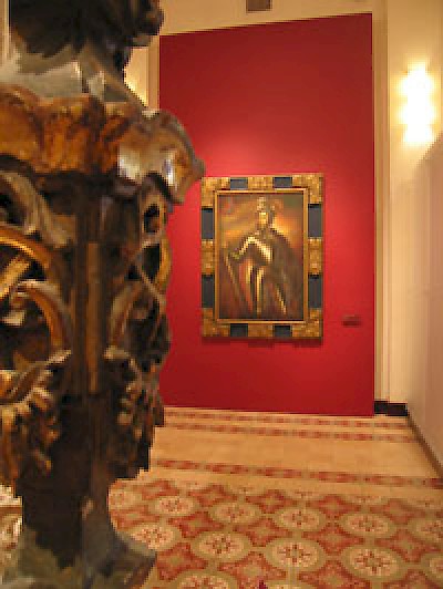 Hay una hermosa colección de santos de madera pintados, generosamente donados por el patrimonio de Manolo Rivero, un conocido hijo de Mérida que fue dueño del Hotel Trinidad y la Galería Trinidad, pero que falleció el año pasado. Hay un vestido de encaje precioso, donado por una de las familias antiguas de Mérida. Hay una vitrina con recuerdos y fotos de los primeros emigrantes de Líbano y Corea.