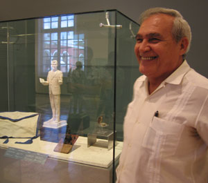 Una de nuestras exhibiciones favoritas contiene una pequeña estatua de Felipe Carrillo Puerto, probablemente el gobernador más célebre de Yucatán. Esta estatua fue el modelo a escala del artista para la estatua final de bronce, de tamaño real, que está en la Avenida Itzaes, visible al entrar a Mérida desde Umán, justo después de cruzar el Periférico. La vitrina también contiene una llave de telégrafo usada por Carrillo Puerto, su brújula y su mandil masónico.