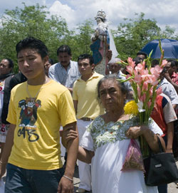 A visit to Hoctun makes a great weekend outing. If you go, be sure to visit the famous cemetery. The old section is fairly traditional, but the new section has some spectacular grave designs. There are several replicas of the Chichen Itza castle, painted all different colors and adorned with everything from flowers to cherubs and angels. There is also a 2.5 meter (or 8.2 ft) tall replica of the Latinamerican Tower in Mexico City. No crumbling cemetery here. Everything is beautifully painted, every year, and worthy of being a tourist destination all its own. You'll want to see the church too. There you will find the Black Christ of the Transfiguration, San Miguel, and the Virgin Mary. We'd like to mention that Ginny (Peregrina), one of our regular visitors, is from Hoctun and no, the Working Gringos did NOT make it to the Vaquería that was held there last weekend. We hope she'll forgive us and we'll try to make it next year or just drop by soon to visit her beautiful little town.