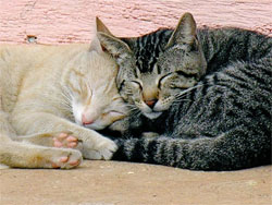 After having been chastised by my favorite reader for not writing as much about cats as we do about dogs, we thought we would add these warnings about what not to feed your cat - or any cat you may befriend in the street. Do not give cow’s milk to cats. They are, for the most part, lactose intolerant. Cow’s milk gives them an upset stomach and diarrhea. In addition, be careful about giving cats leftover tomato based foods, such as spaghetti sauce. They love it, but it can be toxic. Go to Pet Education and print their list of foods that should be kept away from cats. It is almost the same list for both types of pets, so it shouldn’t be hard to keep both your dog and your cat safe from toxic foods.