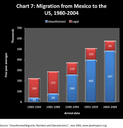 Mexicans choosing to head north of the border continue to be, in large part, from the states of Michoacan, Zacatecas and Guanajuato and net migration has remained fairly constant from the 4th quarter of 2008 until the present day. This represents a reversal of the previous trend, and a large drop from the numbers in the years before 2008, as evidenced by the chart to the right.