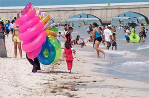 One has to look on, marvel at the sight, and wonder why in the world reasonable human beings will put themselves in the position of heading to the beach – in mass – when it is this hot outside. Hundreds of thousands of Yucatecos and other Mexicans meet at long owned family homes for marvelous parties and reunions. Renters arrive from all over the world! …and the cruise ships just keep on coming. Municipal festivals and fiestas abound, dimming the lights every time the mechanical games and rides are plugged in. Some people behave badly, but most try to be good neighbors. Kids make one last grab for freedom before school begins again. Older folks hunker down in their homes and wait for the traffic to pass. Not to worry – all is hot, loud, and loads of fun on the beaches of Yucatan in 2010.