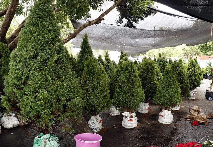Answer: Artificial (with decorations): approximately 1,000 pesos. Live tree: 800 to 1,500 pesos (guaranteed farmed, certified not from deforestation)