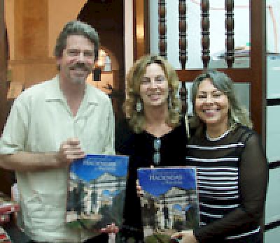 When we arrived at FAUADY, the tables were set up in the inner courtyard of the huge three story stone building that was once a monastery. There was a formal guest list which was politely checked at the door. The party was attended by many faculty members, hacienda owners, students, alumni (including Salvador Reyes Rios, Henry Ponce and Gabriela Cornelio) and the man who single-handedly started the hacienda revival here in the Yucatan, Roberto Hernandez. The governor of Yucatan was scheduled to attend, but spent the evening at the Mexico City airport, due to inclement weather. After an introductory speech (we understood almost all of it) and a video presentation, there were a few expository speeches, including one from the woman who had directed our work, Blanca Paredes, a well-loved profesora. Afterwards Blanca presented us with official certificates proclaiming our contributions. But more importantly, she gave us each one of the treasured tomes.