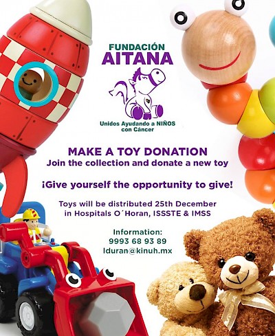 The larger public hospitals in Merida provide much of the specialty care for children throughout Yucatan and surrounding states. They provide excellent care for children who suffer from cancer, as well as support for their families as they travel to Merida, Mexico City, and Queretaro’s HITO for state-of-the-art care. The Fundacion AITANA is an organization based in Quintana Roo. However, they have a new Christmas campaign that is going to give a brand new toy to every “cancer kid” in hospitals O’Horan, ISSSTE and IMSS as they spend what must be a very scary Christmas far from home. Everyone is invited to contribute to this cause and show these little cancer patients that they are safe in the arms of Merida. To participate in this program, call Lupita Duran (999) 368-9389, visit the Fundacion AITANA website, or find Lupita Duran on Facebook.