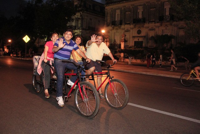 Family fun on bicycles has long been a staple of cultural opportunities for Yucatecos, and especially for Meridanos. Over the course of the past year, the original Bici-Ruta has been divided up so that more people, throughout the Municipality of Merida, will be able to take advantage of it. Unfortunately, many people work during the morning hours on weekends and were still unable to participate with their families in this great event. No more! Now, there is a Nocturnal Bici-Ruta. As part of the Saturday night Noches Mexicanas, it begins at the head of Paseo de Montejo and continues out on Paseo de Montejo from there. The trial run was a grand success, with many families expressing their gratitude for finally being able to participate in this long-standing cultural event. As with all the Bici-Rutas, this one includes stops along the way that feature opportunities for the purchase of handicrafts, as well as several forms of entertainment. This will probably make Noche Mexicana even more fun and well-attended than it already is!