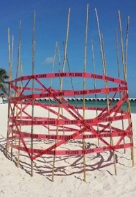 Keep an eye out for sticks with red ribbons of duct tape on them. These mark the spots where sea turtles have left eggs in nests all along the beaches of Yucatan. It is extremely gratifying to see that members of the general public are now quick to call the authorities when a nest is found. In one case, this week in Chicxulub, while specialists came to oversee the unexpected hatching of 20 baby hawksbill turtles, another hawksbill was trudging onto shore to deposit 160 more eggs. Please be especially careful to watch for the sticks wrapped in red duct tape, and even more careful to watch for nests that have not yet been discovered and marked.