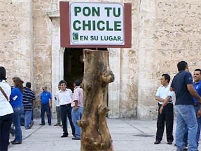 We have written on the topic of how much it costs taxpayers to remove chewing gum from the streets in other large cities around the world. Most of those cities have outlawed chewing gum on the streets and consumers are moving to purchase biodegradable, chicle-based chewing gum, which is a product that begins right here in Yucatan. Right now, the City Council of Merida is beginning with a 2 week program to raise the awareness of citizens on this issue by placing repositories for their gum on street corners throughout Centro. In the meantime, the streets will be cleaned and sanitized with a new steam machine. Ultimately, however, we can look for the same “no gum chewing on the streets” laws that are present in most other areas of the world today. (By the way, that sign says Put Your Gum in its place!)
