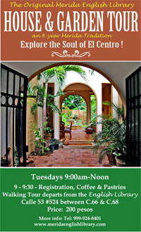 The Merida English Library is starting its house tours on October 2 this year. Unlike in previous years, beginning this year, all proceeds go to the library. As most of you know, the previous tours started at the library and were conducted by local realtors, with the realtors giving 20 percent to the library. This year the library is conducting its own house tour, some of which will be led by realtors donating their time. These new House and Garden tours will tour small, medium and large houses of all kinds. They will also show houses under construction, as well as houses lived in by both expats and Yucatecos. The houses on this years' tours will usually NOT be houses which are for sale, but instead private homes (which was the original intention of the tours when they were started). If you are interested in attending a tour, call the library for more details at 924-8401. The library is located at Calle 53 X 66 y 68, Centro. The cost for a tour will be 200 pesos, and the tours will be on Tuesdays. During October, tours are half price for MEL members, so come and see one and get acquainted with the new tours. For those who are not familiar with the Merida English Library, it has more than 10,000 volumes, (much larger that the typical suburban branch library collection). The collection is curated and offers a very good selection of Maya and Mexican history from a variety of viewpoints. There are also DVD's, magazine, computers and internet access and a community of English-speaking residents and visitors.